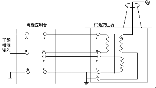 在试验变压器中:a、x为低压输入端;A、X 为高压输出端;E、F为仪表测量端。