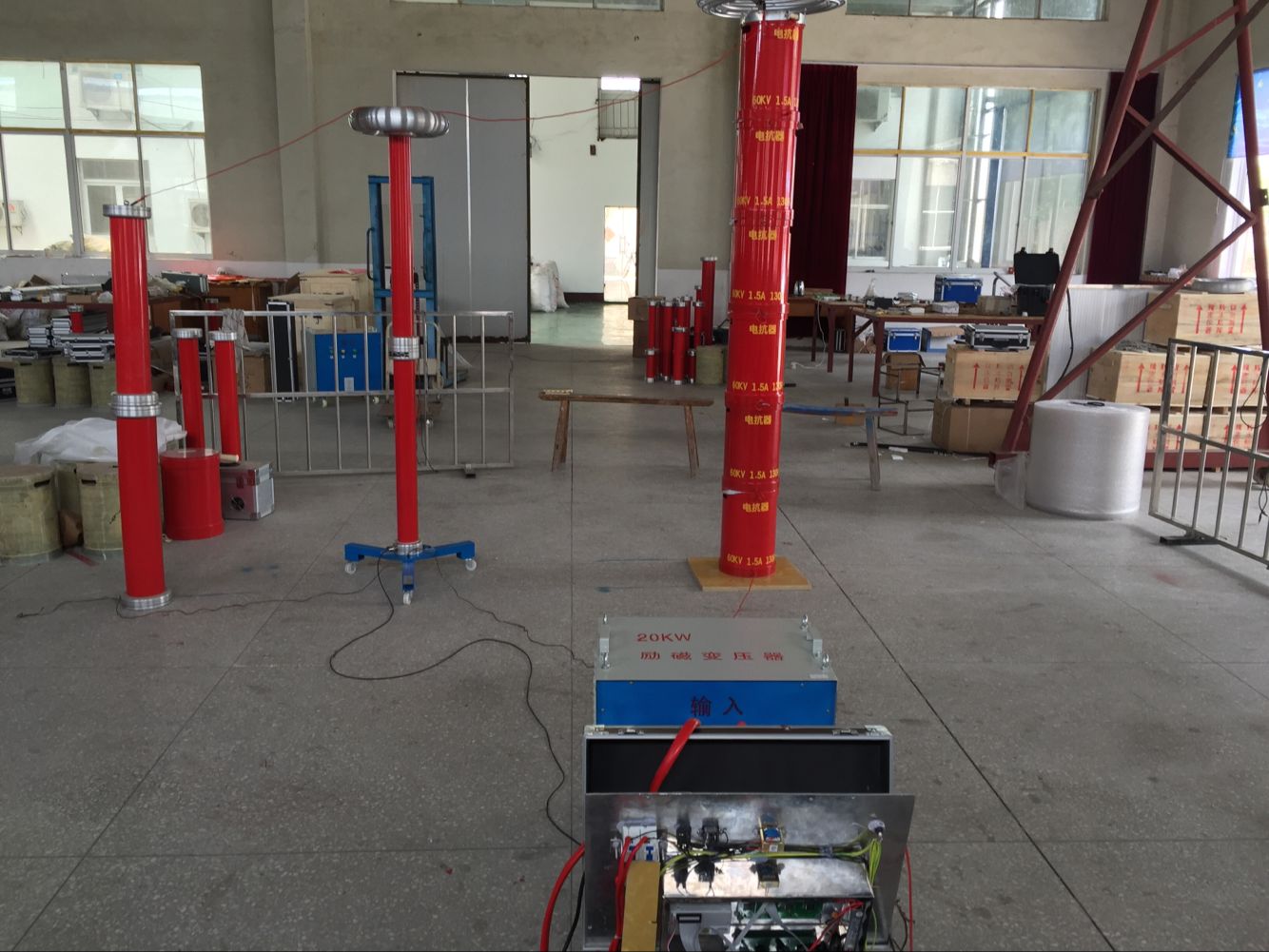 5. 不会出现任何恢复过电压。被试品发生击穿闪络时,因失去谐振条件,高电压也立即消失,电弧立刻熄灭,装置的保护回路动作,切断输出。